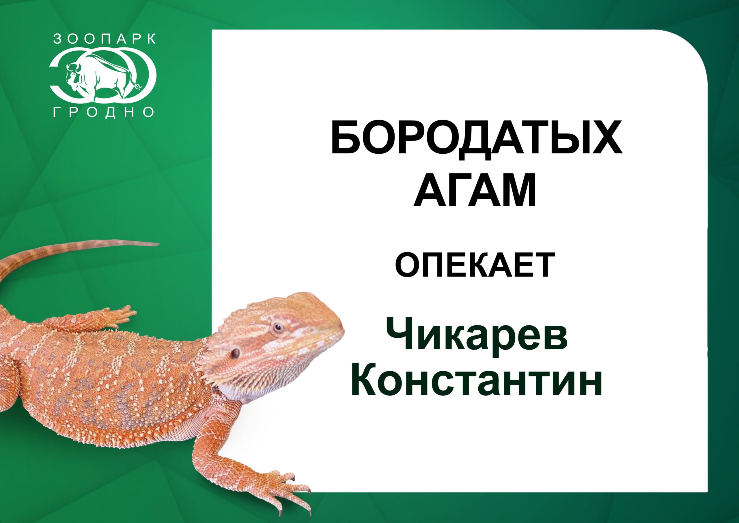 Константин Чикарев опекает трёх бородатых агам. Гродненский зоопарк выражает благодарность Константину Чикареву за участие в программе “Опека” и поддержку наших питомцев. Опубликовано 17.03.2026