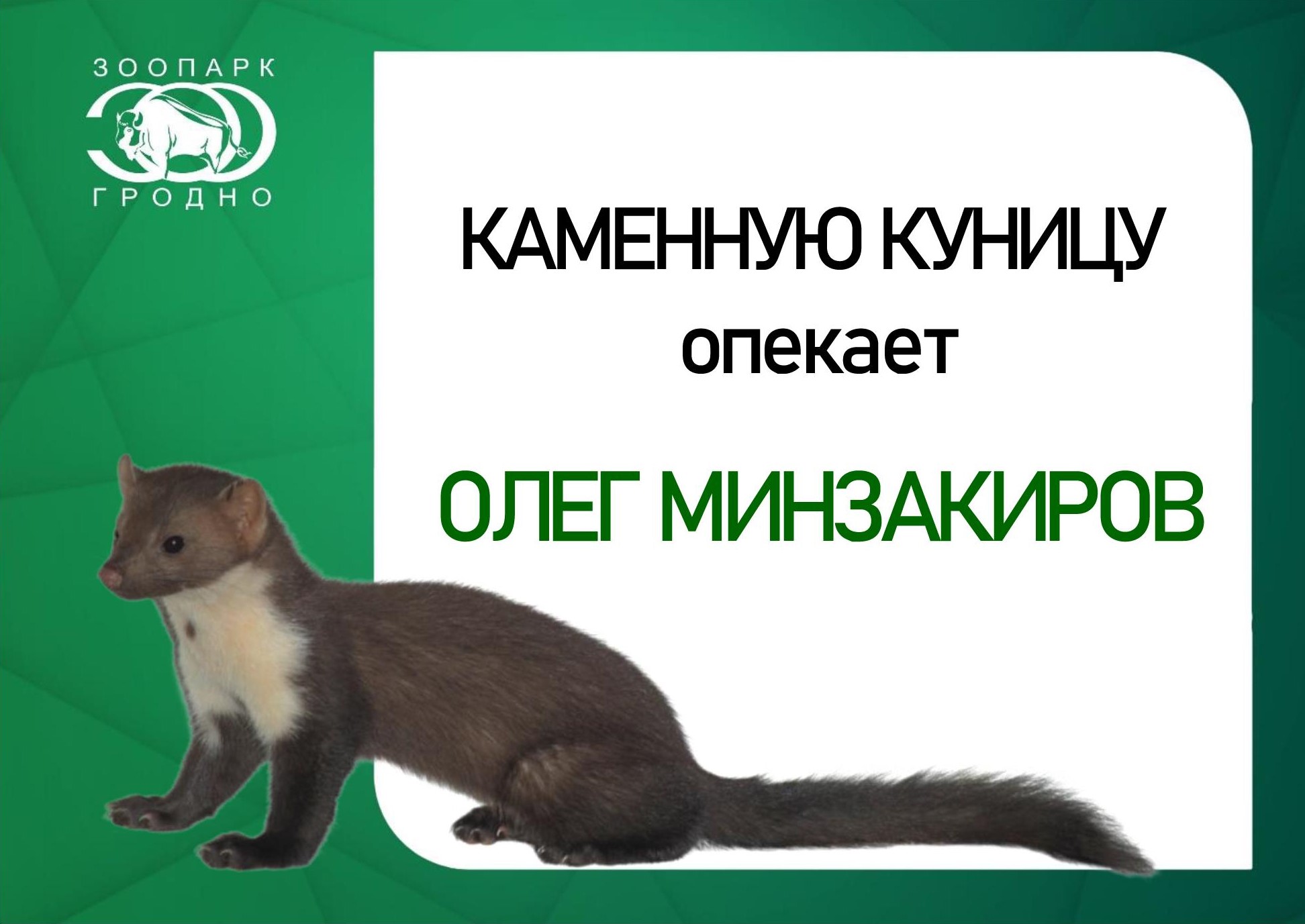 Гродненский зоопарк выражает благодарность Олегу Минзакирову за участие в программе “Опека” и поддержку наших питомцев. Опубликовано: 22.04.2026