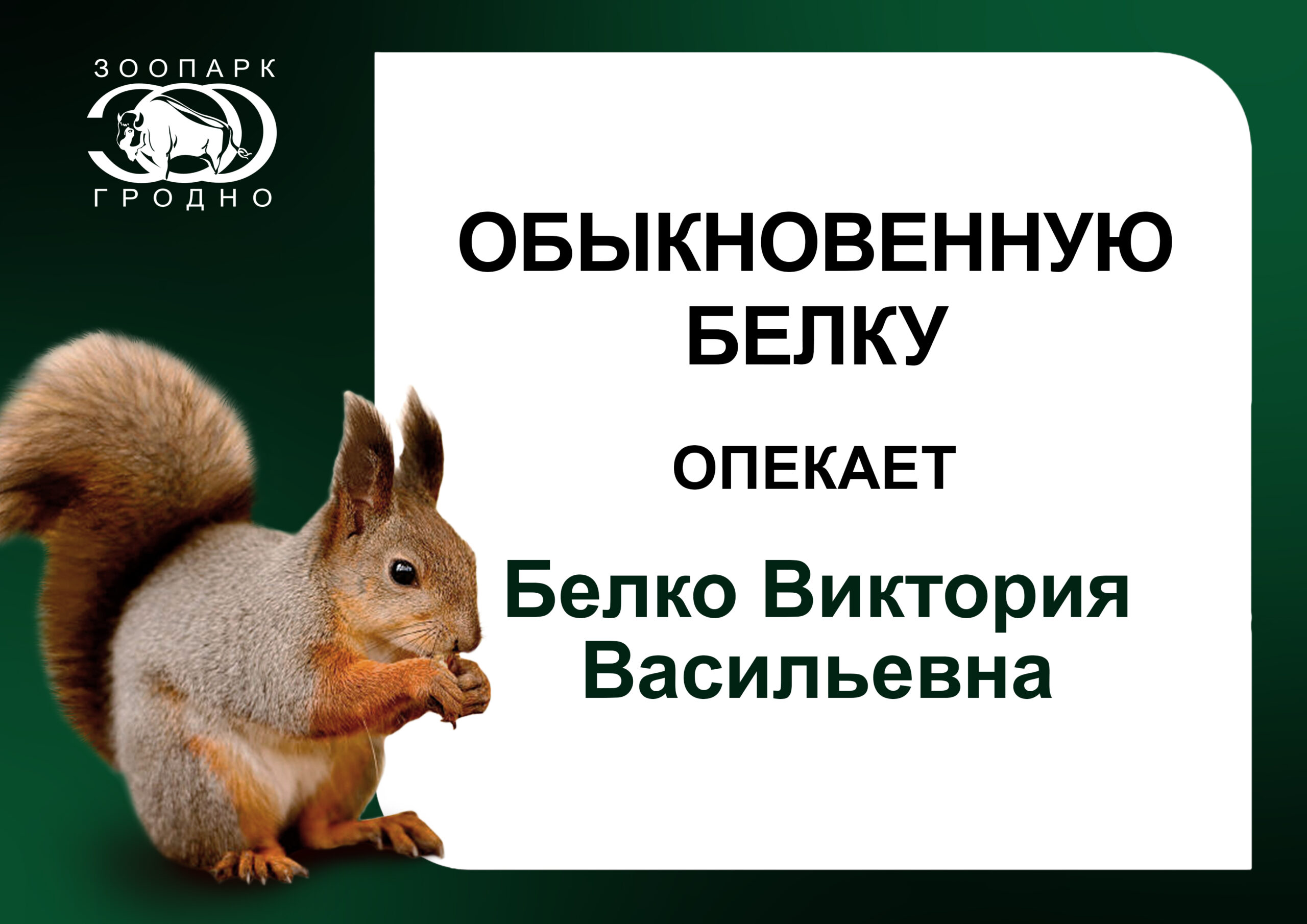 Белку опекает Виктория Белко Опубликовано Автор Гродненский зоопарк выражает благодарность Виктории Васильевне Белко за участие в программе “Опека” и поддержку наших питомцев. Опубликовано: 24.02.2026